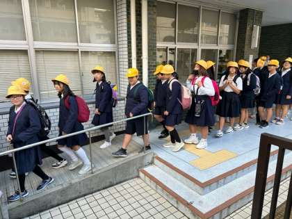 曇り空で少し冷んやりする中、リーダーがオリックス劇場に向けて出発しました!