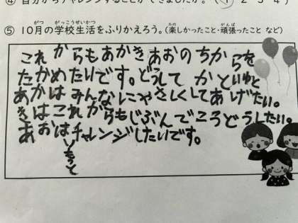 子どもたちは、毎月末にはその月のふりかえりをしています。
