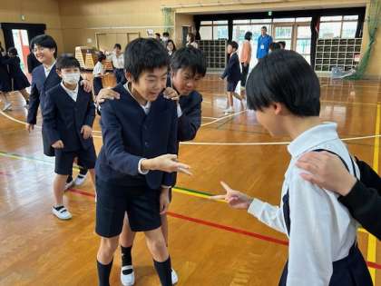 今朝の遊びは「じゃんけん列車」子どもたちの歓声があちこちで起きています!みんな楽しそうです!