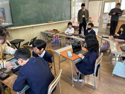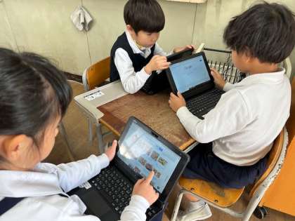 どちらの学年でも、チームに分かれて、タブレットを駆使して、みんなで考えながら活動しています。