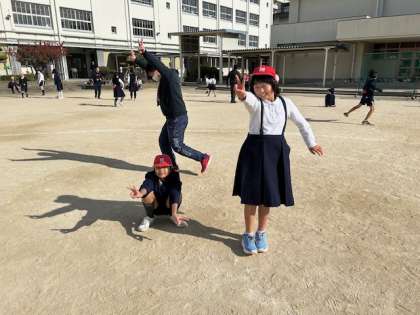 中休み15分休憩には、縦割りグループで話し合った遊びを満喫しています。