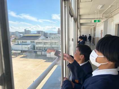 4階の窓から飛び出した飛行機は風に乗って、運動場へ浮遊したものもあれば、元気よく落下していくものもありました。