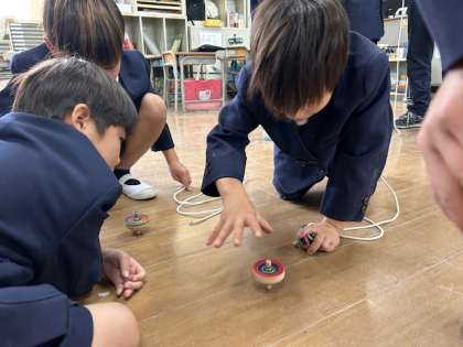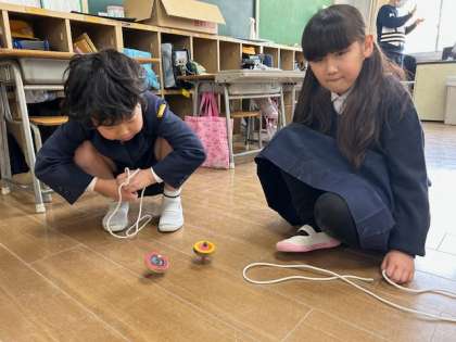 ひもをうまく回しつけるのがなかなか難しい!そして、それができても、投げるのが難しい!それでも、何度もやり直しながら、あきらめずにやり続ける子どもたち!