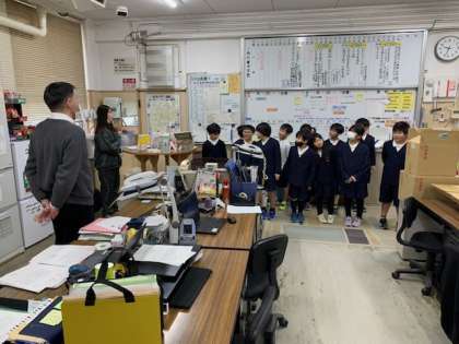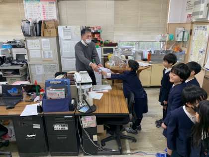 今日は2年生の子どもたちが職員室に広報活動をするためにやってきました!