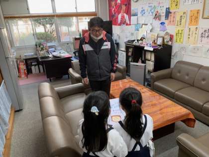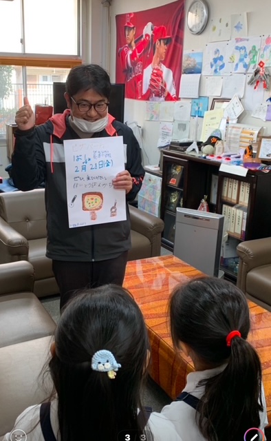 休み時間に校長室のドアがコンコンコン!扉を開けて、1年生の子どもが2人!入ってきました。少し緊張した面持ちで、