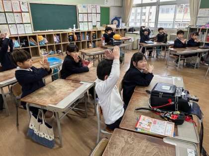 また、いつも美味しい給食をつくってもらっている給食調理員さんへ、感謝のメッセージを伝え、みんなからのメッセージポスターを贈りました。