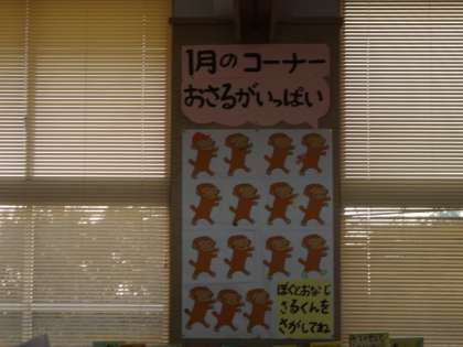 今年の干支の「サル」がたくさんいますよ。サルが出てくる本もたくさんあります。