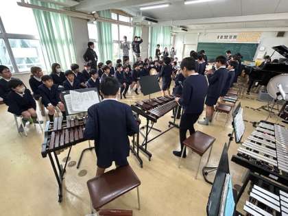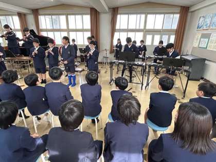 今日の長原タイムでは、5年生が2年生と4年生を招待して、合唱と合奏を披露する学びを行いました。