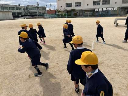 寒空の下、元気な子どもたちが運動場に飛び出しました!