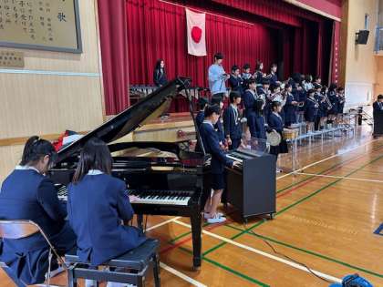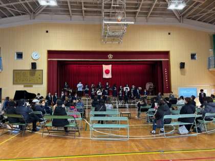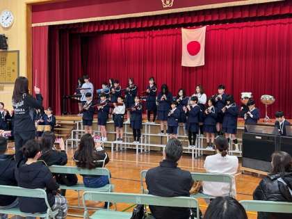 小学校生活最後の学習参観。子供たちは広い体育館の大きな舞台に立ち、サポーターの皆さんに「6年間の絆」のタイトル通り、みんなの気持ちをひとつにした合唱や演奏を伝えることができました。
