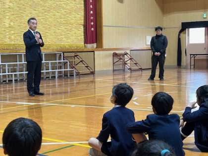 今朝は区役所より副区長をお招きして、ひらちゃんノート表彰式が行われました。
