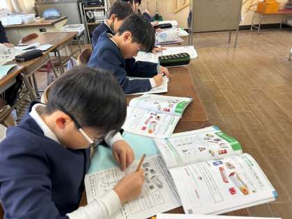 教室を覗くと子どもたちが黙々と1人の世界に入って学んでいます。