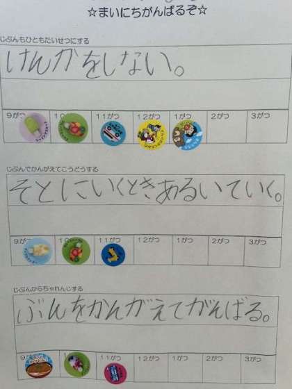 1年生の教室前の廊下にこんなものが掲示されていました。いつも子どもたちに投げかけている長原小学校の「3つの力」子どもたちには、いつも「3つの風船」と呼んでいるものです。