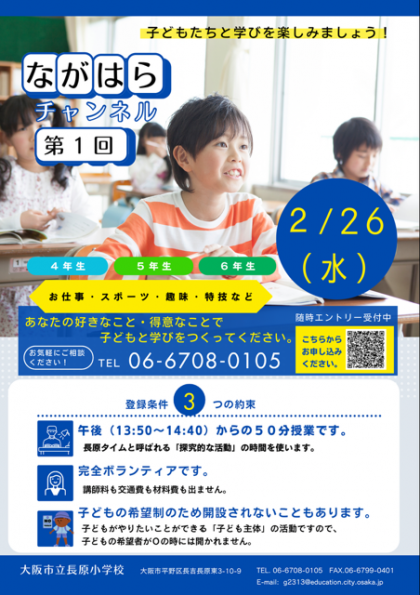 ?令和7年2月25日(火) 長原チャンネル 今から3ヶ月前に長原チャンネルの発信を初めてしました。「大人が楽しめば子供も楽しむ。」「生き生きした大人と一緒に子どもたちも生き生き学ぶ。」 そんな子どもの学びを目指したく、長原タイム、新企画として、いよいよ明日第1回を迎えます 。 15人の方のエントリーがあり、当日は11名の方の講座が開設されることになりました。講師のみなさま!明日子どもたちとの学びを楽しんでください。 これからも引き続き長原チャンネルのエントリーは募集し続けます。1人でも多くの大人のみなさんが、自分の得意なことや好きなことを子どもと一緒に楽しんでほしいと思っています。 みなさまのエントリーをお待ちしています。申し込みはこちらからお願いします。ながはらチャンネル エントリー希望シート申し込みフォームdocs.google.com