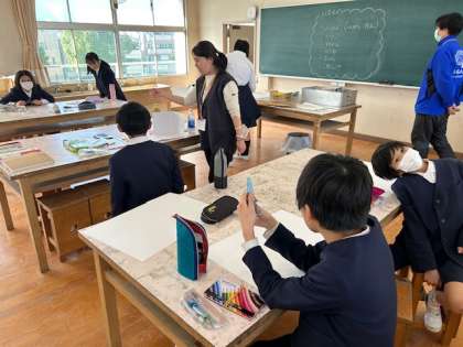 色鉛筆や絵の具、ハサミやノリなどなど、身の回りの画材を使って、オリジナルの作品づくりにチャレンジする子どもたち!将来デザイナーになる人がいるかもですね!