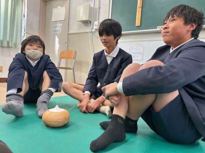 そっと扉を開けると、円座して静かに目を閉じる子どもたち。呼吸を感じながら、アロマの空気を感じながら、1人の世界に入ります。普段は意図して感じない鼓動や心動に集中する貴重な体験でした。
