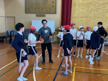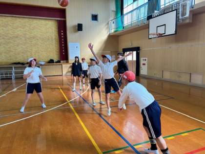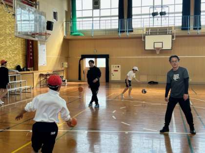 ミニバスの監督も務められている本格的な指導者とともに、バスケットボールを楽しんだ子どもたち!シュート練習のあとは、ゲーム形式で楽しみました。シュートが決まった時のうれしそうな顔が最高でした!