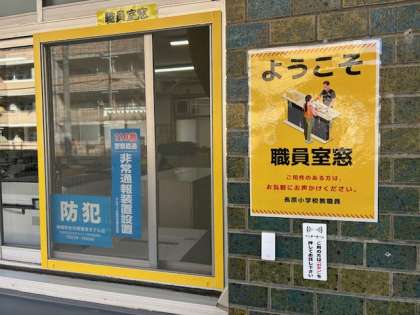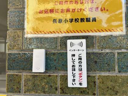 窓のそばに「チャイム」を設置しました。ご来校の際はこのチャイムを押していただき、職員室にお声をおかけください。