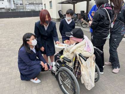 「いらっしゃい!おいしいよ!トッピングはね・・・!あったかいうちに!1人ひと切れね!」などなど、自然にお店屋さんになり、接待を学んでいきます!