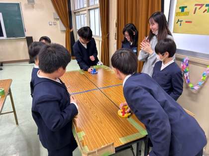 多目的室を使って、自分たちが手作りで考えたおもちゃを学校中の子どもや大人達と一緒に楽しみました。