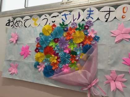 学校のあちらこちらで、卒業生へのメッセージが掲示されています。