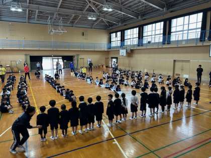 体育館に最初に入ったリーダーが空気をつくります。あとから入る子どもたちがその空気を感じて会場をつくります。開始予定5分前には、すでに全員がスタンバイOK!まさに、みんなが「自分で考えて行動する力」を発揮しました!
