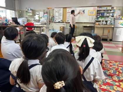 子どもたちは保健室で「ケガの対処の仕方」を学びました。