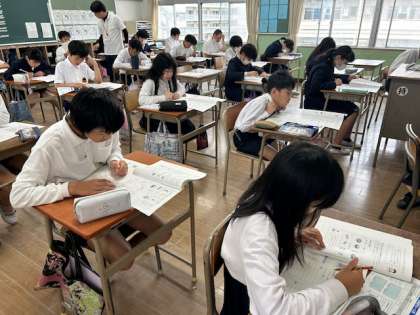 子どもたちは自分の持てる力を最大限に発揮することを目的に、答案用紙に向かっています!