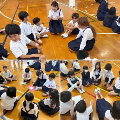 今日は児童会担当からスマイル班の目的や役割を説明した後、それぞれの班でサークルをつくり、サークル対話を楽しみました。
