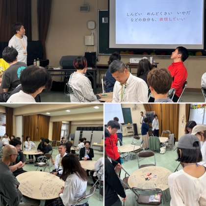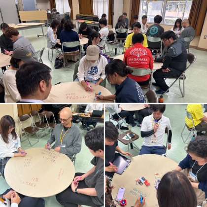 そして、他のグループではどんな意見が出たのかを交流する時間!円たくんの周りにはいろんな人が集まります。このシェアがとても大切な時間になりました。