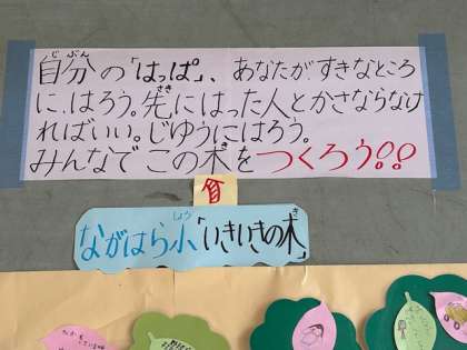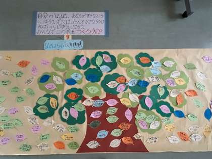 「あなたはどんな時にいきいきしますか?」の答えを子どもも大人も1人ひとりが考えて、いきいきの木を茂らせました!