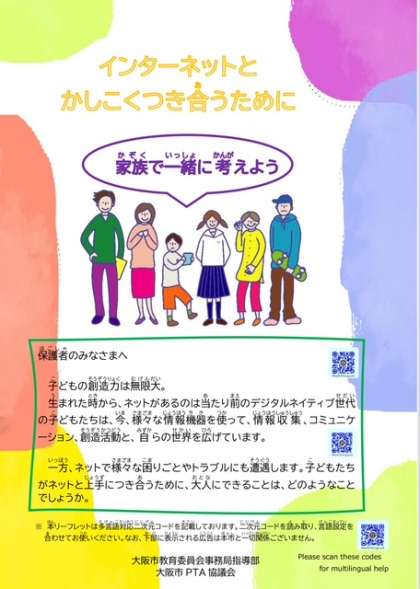 ぜひ、この機会に子どもたちと話し合ってみてください。よろしくお願いします。
