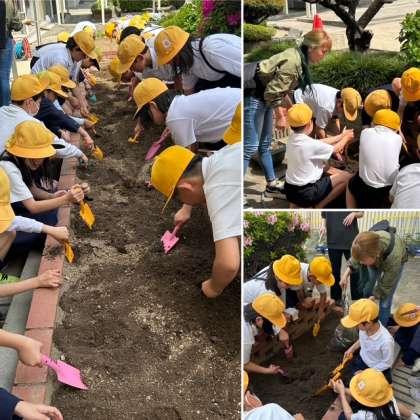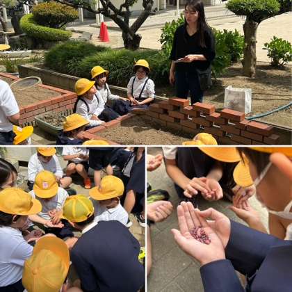 土の耕し方や肥料の混ぜ方、そして種の植え付けなど丁寧に教えていただきました。