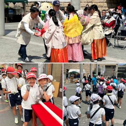 五月晴れの空の下、子どもたちが長原小学校に大集合しました。