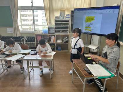 タブレットをカメラにして写真を撮りに行ったり、その場所がどんなところなのかをタブレットに打ち込んで行ったり、ICTを活用した学びの場はどんどん広がっていきます。