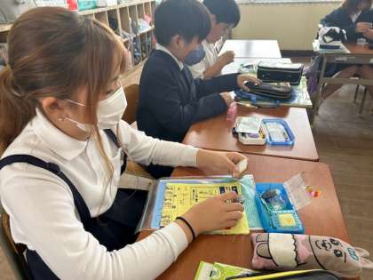 針に糸を通す作業はなかなか難しい作業です。細かい作業が苦手な子にとっては苦労するかもしれませんが、こうした経験はこれから生きていくためには必要な力になります。
