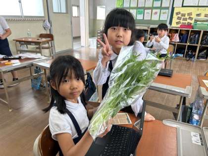 子どもたちは「長原ファーム」で育てた「水菜」を