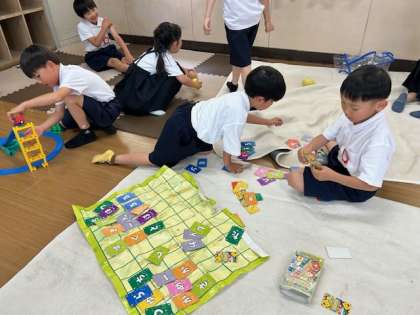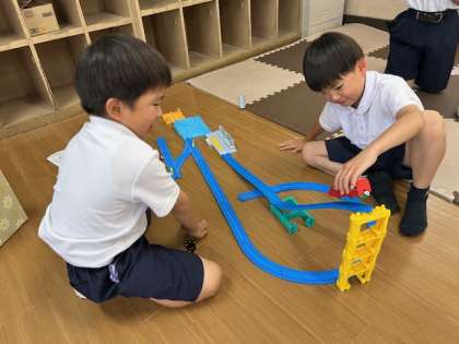 遊びながら友達と考えを伝え合ったり、一緒に何かをしたりします。ときには考え方がぶつかってしまうこともあるかもしれませんが、それも学びのチャンです。