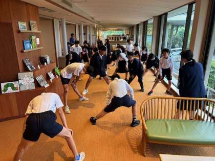 朝の集い!子どもたち少し眠そうですが、元気です!