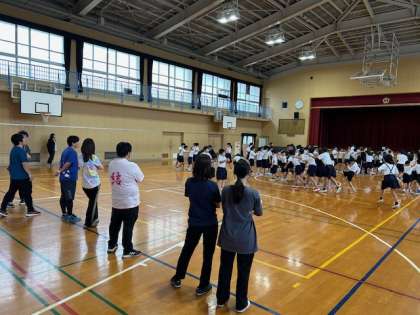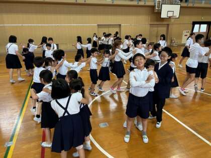昨日から教育実習として子どもたちとともに学んでいる先生の自己紹介の後は、集会委員会による遊び!「じゃんけん列車」が始まりました。