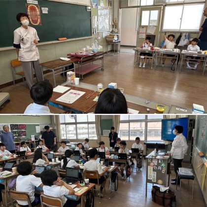 2年生の子どもたちは、「歯磨き指導」、4年生の子どもたちは「フッ化物洗口」をそれぞれ学びました。