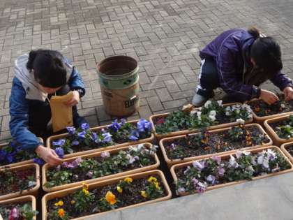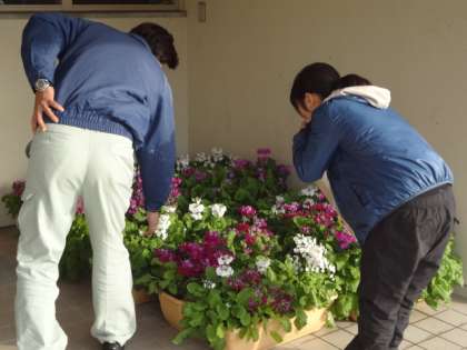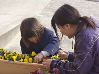 事務職員さんにはどんな仕事があり、教員になったときにはどのような関わりがあるかをお話していただきました。また、管理作業員さんには花の手入れなどを教えていただき、一緒に作業をしました。パンジーやビオラの種を取り、来年用に保管しておきます。2年生の子どもも手伝ってくれました。