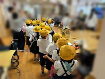 玄関入口で一人一人手洗いをしっかりして、自動扉をくぐると、施設の方がお出迎えしてくれていました。