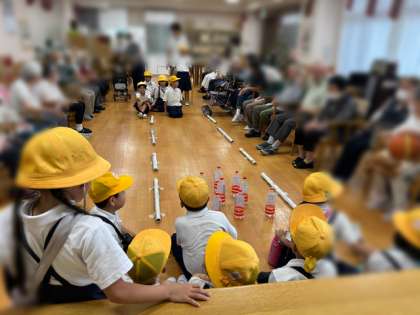 子どもたちは、お隣の特別養護老人ホームこうのとりさんにお邪魔して、施設のみなさんと一緒にボーリングゲームを楽しみました。