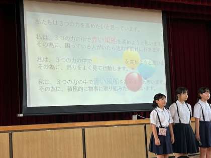 「3つの力」を自分なりの言葉で、自分から表現する姿は立派でした!パワポのスライドも自作して、見事に進行を務めることができました。