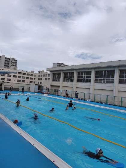 朝一からのプールですが気温もよい感じで、5・6年の子どもたち、とてもいきいきと活動しています。