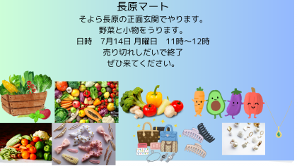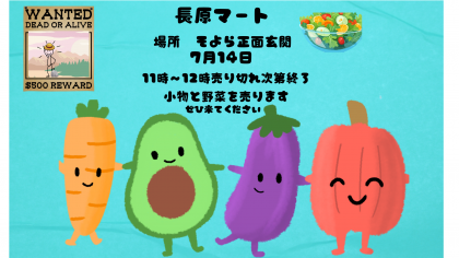 「イオンそよら長原」にて、子どもたちの野菜販売「長原マート」が開催されます。