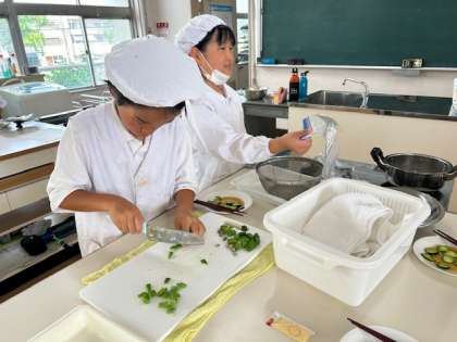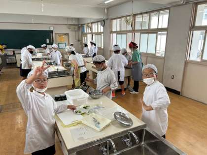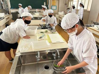 夏休みに入ってすぐに始まる林間に向けて、みんなで頑張ろうも!テーマに調理実習に入りました。