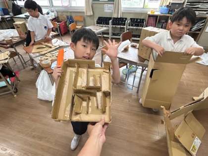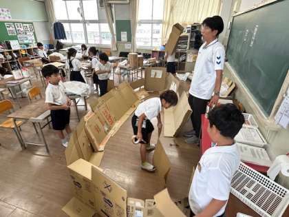 2年生の子どもたちは、教室の隣の部屋から大きなダンボールを抱えながら教室に入ってきました。