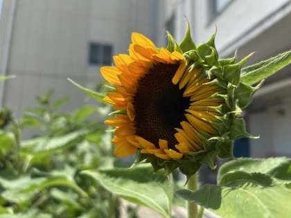 あれから数ヶ月、ようやくほんとにようやく花の姿が見えました。とても背の高いひまわりたちで、いつ花を咲かせるのかと待ち遠しく思っていました。